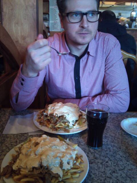 Eftersom jag är en seriöst idrottsman så käkade jag sallad, medans Stridh beställde in 2st Kebabtallrikar! (jag sitter o väntar på min sallad på bilden)